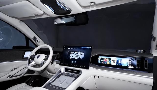 腾势N9的磅礴尺寸(5258×2030×1830mm,轴距3125mm)与未来科技感设计(动态矩阵大灯、隐藏门把手、贯穿尾灯),旗舰气场十足。坐进车内的第一感受。商务范十足。前排给人一种沉稳大气的感觉。悬浮式中控屏该有的都有。副驾娱乐屏也是标配。DiLink车机系统的流畅度没得说。功能丰富程度也达到了业内主流水平。