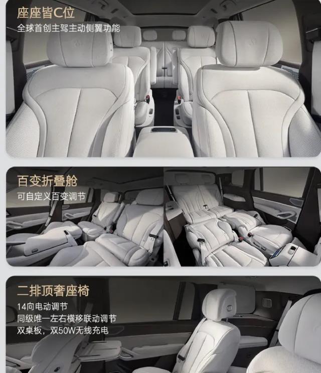 一体式星穹智控岛(17.3英寸吸顶屏、50英寸AR-HUD、13.2英寸副驾屏)运行流畅,为天神之眼的信息交互提供顶级硬件支持。帝瓦雷音响,六座布局,二排双向横移+零重力,三排电动调节+坐垫抬升,独创三折叠座椅实现全平大床模式,351-1140L后备箱,满足多场景需求。